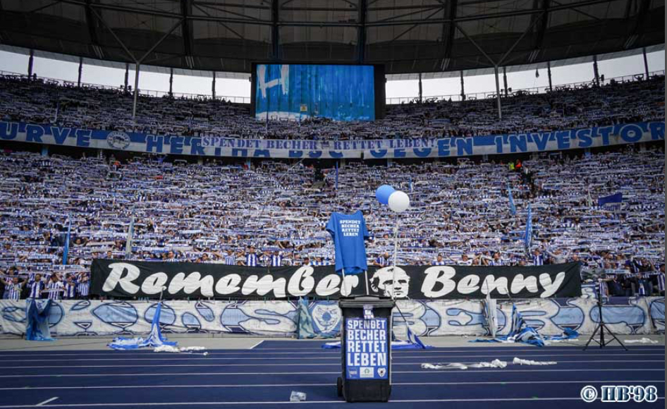 „Spendet Becher – Rettet Leben“ war nie nur eine reine Spendensammlung. Es soll über gemeinnützige Vereine und Organisationen informiert werden, die Menschen in schweren Lebenssituationen unterstützen. Es ist ein Gemeinschaftsprojekt der gesamten Fanszene von Hertha BSC, bei der sich junge und ältere Herthaner mit schwierigen Lebensthemen auseinandersetzen, sich für diese Projekte engagieren und diese Einrichtungen für alle Stadionbesucher und Interessierte präsent machen. „Spendet Becher – Rettet Leben“ ist aber auch ein Gedenktag für unseren Freund Benny, der 2005 seine Leukämieerkrankung letztendlich nicht besiegen konnte, obwohl sein gesamtes Umfeld und er selbst alles dafür gegeben hatten. In Gedenken an Benny werden wir die Tradition von „Spendet Becher – Rettet Leben“ jährlich mit Stolz weiterführen und mit Leben füllen.