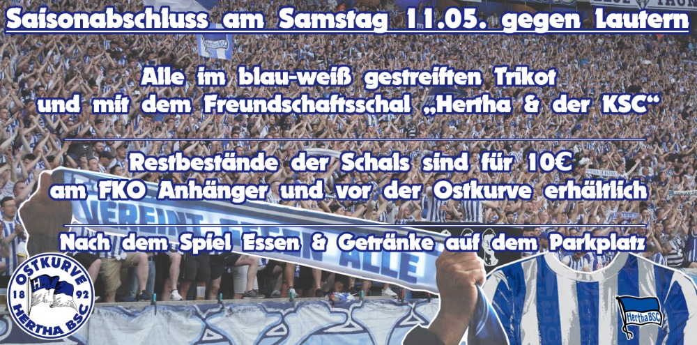 Saisonabschluss am Samstag 11.05. gegen Lautern