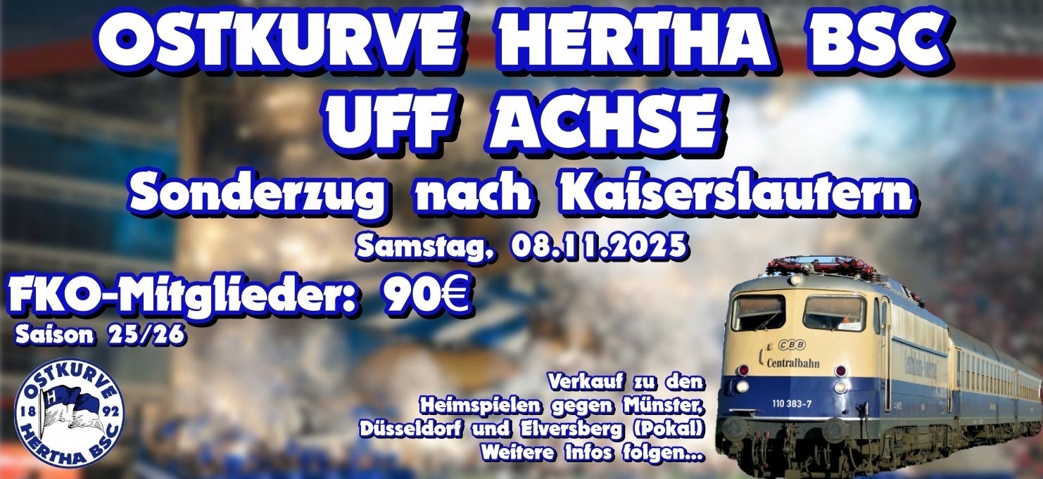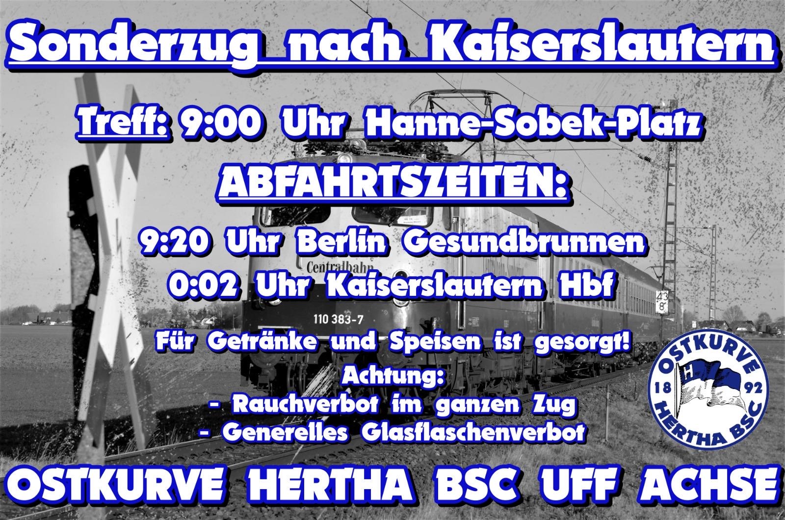 am Samstag den 08.11. treffen wir uns alle um 09:00 Uhr am Hanne-Sobek-Platz, um von dort mit unserem Sonderzug nach Kaiserslautern zu starten. Neben den Partywagen mit DJ wird auch eine große Auswahl an Speisen, Snacks und Getränken in unserem Sonderzug angeboten.