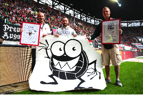 Je 600 km müssen die Anhänger des FCA an einem Sonntag nach Wolfsburg und an einem Freitag nach Gelsenkirchen zurücklegen um ihrem Verein folgen zu können. FCA-Aufsichtsrat Klaus Hofmann, der den Preis symbolisch entgegen nahm, erkannte richtig: „Eigentlich müssten wir den Preis nicht nur im Monat Oktober, sondern gleich für die ganze Saison bekommen!“ Denn bei allen drei englischen Wochen dieser Saison müssen die Schwaben auswärts ran und dabei jeweils weite Strecken (Leverkusen, Hannover, Dortmund) bewältigen. Hofmann unterstützte ausdrücklich die Aktion und Forderung von ProFans.