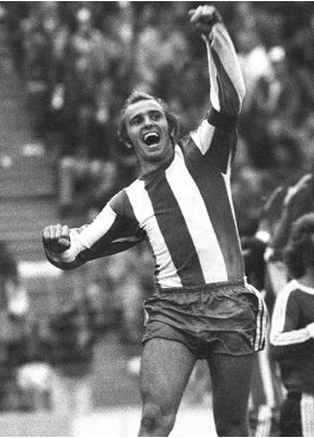 Am 17.05.1975 hatte er sein erstes Länderspiel, in der Endpielrevanche von 1974 gegen Holland, welche 1:1 ausging. Diese erste Berufung machte seinen Kindheitstraum wahr. Seine Leistung explodierte. In der Folgesaison schoss er als Mittelfeldspieler 23 Tore in der Bundesliga für Hertha.