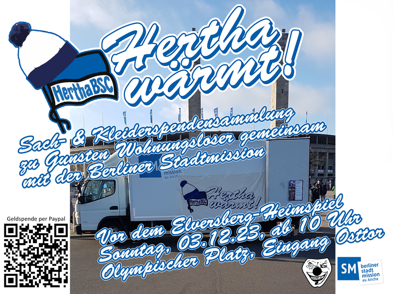 Die kalte Zeit hat wieder begonnen und deshalb möchten wir bereits jetzt ankünden, dass unsere jährliche Spendensammelaktion „Hertha wärmt!“ in diesem Jahr am 03.12.2023 beim Heimspiel gegen die SV Elversberg stattfinden wird. Die beste Zeit also, um das jährliche Ausmisten des eigenen Kleiderschrankes anzugehen.